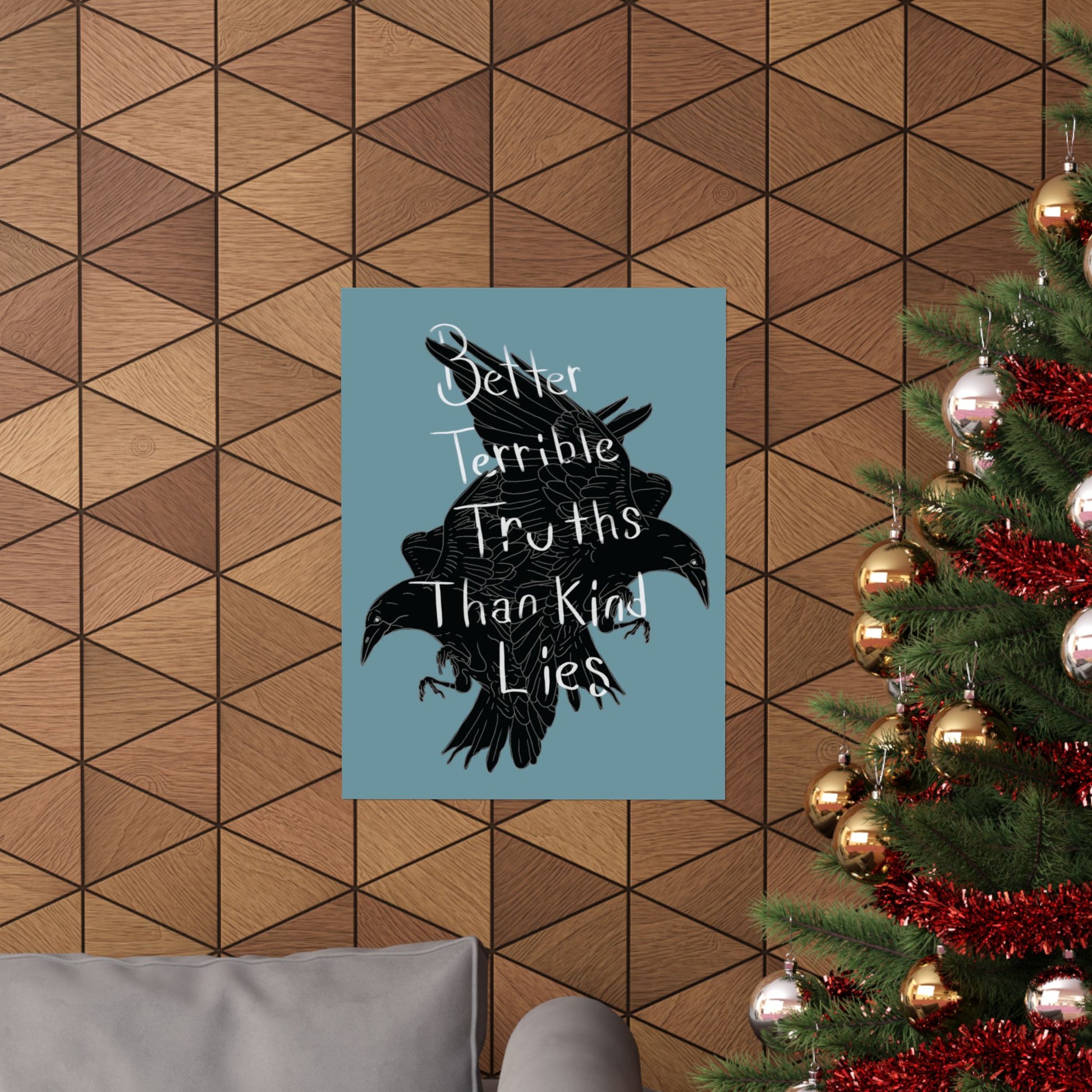 A stunning matte poster featuring a beautiful illustration of a crow with a book quote. This poster will add a touch of elegance to any room and can be a great gift for book lovers and art enthusiasts. Perfect for decorating a home office, library, or study.